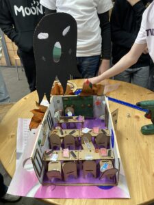 Každá skupina navazuje na práci té předchozí. Z rozmanitých materiálů, zbytků a dostupných digitálních nástrojů vzniká společná instalace s vlastním příběhem, která uzavírá celý den.